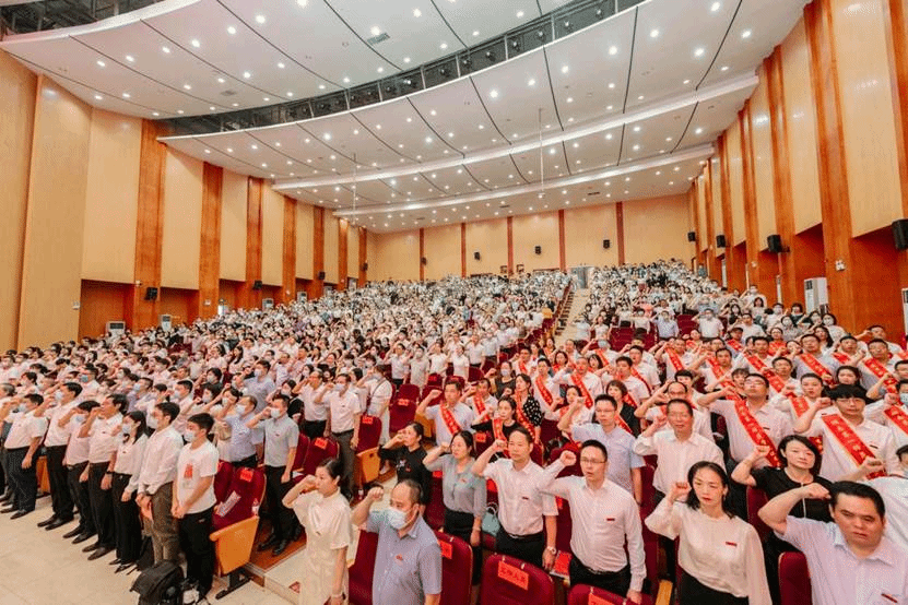 大会在雄壮的国歌声中庄严开幕。“湖南省优秀教师”荣誉获得者刘丽群教授带领全体教师进行了教师执教宣誓。