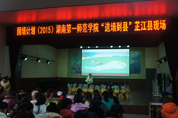 2015年“国培计划”——“送培到县”示范性培训是湖南省教育厅为落实国务院《乡村教师支持计划(2015-2020)》而设立的一项中小学与幼儿教师培训的重点项目,也是加强中小学与幼儿教师队伍建设,促进基础教育均衡发展的一项重要举措。我校送培团队以“突出师德、立足课堂、服务课改、服务教师”为宗旨,采取“师德巡讲、同题异构、互动研讨、专家讲座”的培训模式,融入新理念、新思想、新方法,对全省9个县幼儿教师分别进行为期2天的集中培训,引导和帮助幼儿园教师从实践中学习,在反思中进步,提高幼儿教师师德水平、教育教学水平和课堂教学效果,并实现对各县“送教下乡”培训工作的示范引领,推动幼儿园教师培训工作科学规范、高效有序开展。