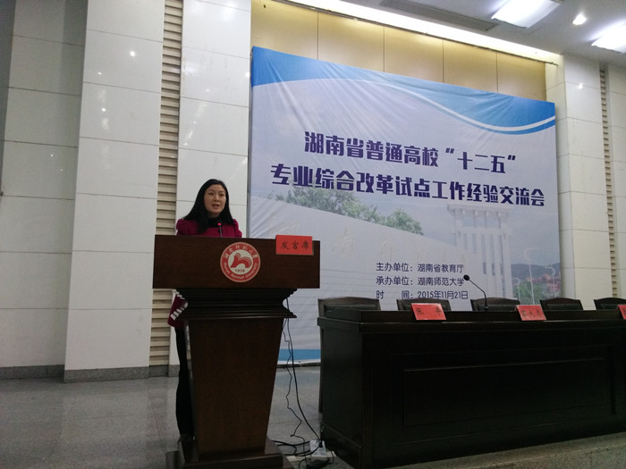 11月21日,湖南省普通高校“十二五”专业综合改革试点工作经验交流会在湖南师范大学召开,省教育厅副厅长葛建中出席会议并作了重要讲话。我校副校长童小娇率教务处、教育科学学院、数学与计算科学学院相关负责人参加了会议。