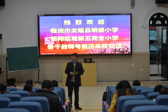 11月12日清晨,迎着绵绵秋雨,株洲炎陵明德小学和岳阳临湘第五完小的骨干教师考察团一行二十多人走进了一附小古朴雅致的小院开始了一天的学习与交流。