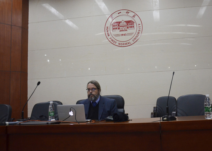 11月10日下午,美国索菲亚大学(Sofia University)马克·冈纳曼教授(Professor Mark Gonnerman)应邀到我校“一师讲堂”作学术讲座。讲座题目为《生命—死亡—重生:解读乔布斯在斯坦福大学毕业典礼上的演讲》。外国语学院和公共外语教学部的师生近300人参加了讲座。