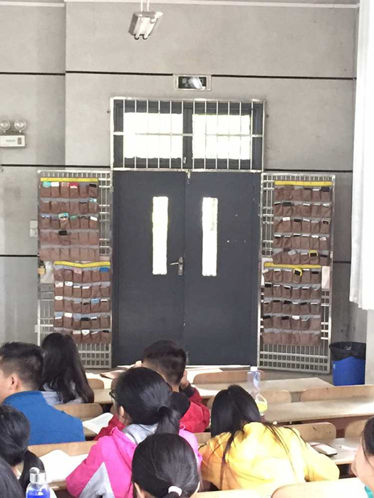 在自媒体时代,智能手机得到广泛使用,课堂上“低头族”、“面朝手机背朝天”的现象比较普遍。因而有老师感叹:“世界上最遥远的距离,是我在讲课,而你在低头看手机。” 学生上课低头玩手机,不认真听讲,学习跟不上,容易产生厌学情绪,特别是对理工科学生来说尤其如此。如何破解这一困局?数学与计算科学学院开展了学生上课向手机说“不”的活动,并在2015级新生课堂上试点开展学生手机入袋工作,即在固定地点放置手机袋,称之为“手机客栈”,上课前,学生自觉将手机放入袋中。