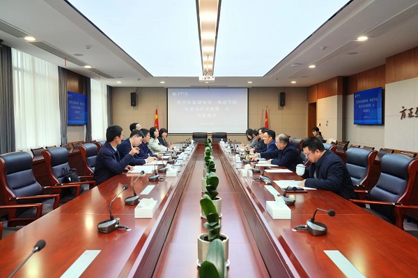 罗成翼指出,杭州师大“立足杭州,服务杭州”,通过调整院系设置、拓展学科布局、优化专业结构,把学校发展与地方经济社会发展紧密联系在一起,把一所地方性高校办成了一流综合性大学,走出了一条以大转型促快发展的非凡之路,值得一师学习借鉴。我们要解放思想,改革创新,因势而动、顺势而为、乘势而上,积极拓展学科专业,主动服务社会发展,既要坚守基础教育主阵地,又要抢占智造长沙新阵地,开辟新赛道,形成新优势,办好新师范。希望双方以“天下师范是一家”的情感和推动师范院校创新发展的共识为纽带,深化交流合作,共同谱写以地方师范院校高质量发展服务地方经济社会高质量发展的新篇章。郭东风表示,湖南一师与杭州师大有很深的渊源,也面临同样的挑战。湖南一师坚守育人初心,大力推进改革,在人才培养、干部人事制度改革等方面取得良好成效,对于杭州师大提升内部治理体系和治理能力现代化水平、争创一流具有很好的借鉴作用。希望双方以此次考察交流为契机,在人才培养、学科建设、内部治理、服务地方等开展深入交流,携手同行,共谋发展。