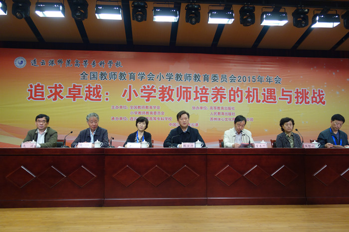 本次年会为期两天。16日上午,北京师范大学朱旭东教授作了“大学课堂学术文化重建”专题讲座;下午,与会代表前往连云港师专一附小、解放路小学等学校考察观摩“课堂教学改革与特色建校”成果。17日,大会分6个分论坛研讨交流了卓越小学教师培养中的焦点问题:卓越小学教师培养的标准、专业文化建设、专业核心能力与培养、学科建设 、互联网+与课程建设等。
