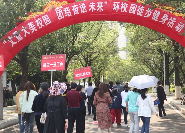 随着罗成翼书记的一声“出发”指令,教职工环校园徒步健身活动正式拉开帷幕。