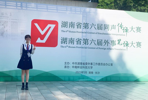 5月28日,湖南省第六届英语同声传译、外事笔译大赛在中南林业科技大学举行,来自湖南省26所高校的148名选手“译”决高下。我校学子与来自中南大学、湖南师范大学等院校的研究生、本科生同台竞技,周勤婧荣获同声传译大赛特等奖(全省共2名),这是我校在该赛事获得的历史最好成绩。黄海霞、姚苏伦分别荣获外事笔译(英语)大赛二等奖和三等奖。