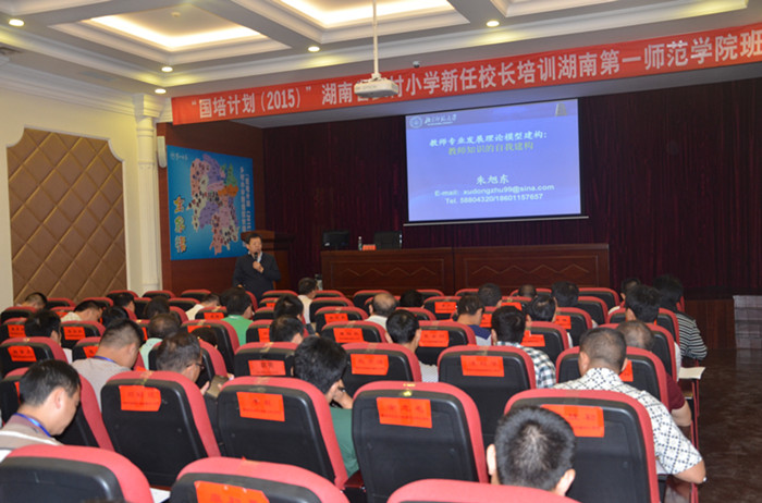 9月20日上午,北京师范大学博士生导师朱旭东教授应邀来我校为“国培计划(2015)—乡村小学新任校长培训班”做专题讲座,讲座的主题为“教师专业发展理论模型建构——教师知识的自我建构”。朱教授根据小学校长的认知特点,着重阐释了教师专业的个体自我建构,提出教师知识是教师自我建构的结果,而教师知识的建构包括了教师的学生知识、教师的自我知识、教师的教材知识、教师的环境知识等四个方面,分析了教师知识自我建构的认识论路径。朱教授采用了大量的问答法进行教学,直抵小学校长的工作实际,引导学员们自我剖析与反思,全场互动强烈,效果反响良好。讲座结束后朱教授与我校刘志敏副校长、教科院蒋蓉院长等就教师教育发展趋势进行了深入探讨与交流。