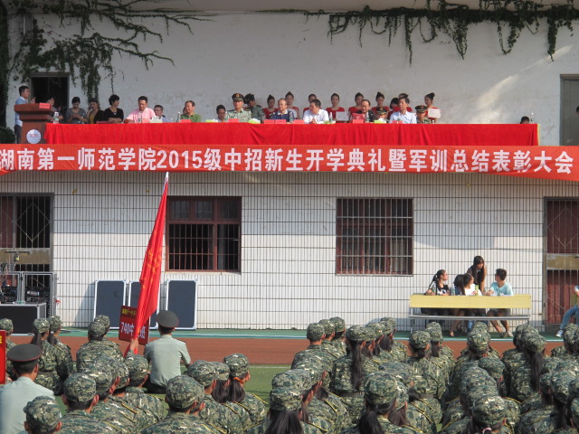 9月29日上午和下午,我校2015级新生开学典礼暨军训阅兵表彰大会分别在东方红校区和城南书院校区田径场隆重举行。湖南省学生军训办公室文麦秋副主任、湖南省军区作训处毛树根副处长、国防科技大学指挥军官基础教育学院文小武上校、郑冰上校,校领导彭小奇、肖湘愚、刘鸿翔、刘志敏、李克勤、刘宇及相关职能部门和各学院党政负责人出席。大会由校党委书记彭小奇主持。
