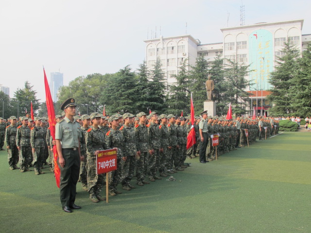 升旗仪式后,盛大而精彩的分列式随后展开。2014级中招新生30个方阵、高招新生30个方阵伴随着激昂的《义勇军进行曲》和嘹亮的口号声正步走过主席台,接受省军区、省教育厅、国防科技大学首长和学校领导的检阅。参训新生身着迷彩服,英姿飒爽,激情满怀,步履矫健,声音洪亮,充分展示了我校学子的青春风采和铮铮信念,赢得了在场师生经久不息的掌声。