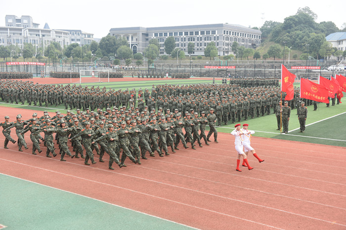 2015级新生开学典礼暨军训阅兵表彰大会在弦诵百年的校歌声中圆满落幕。