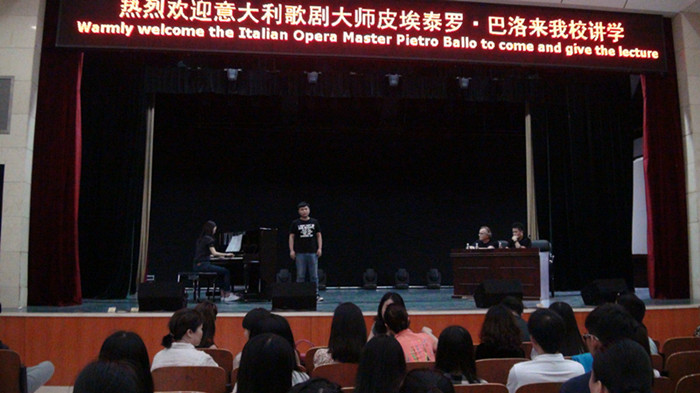 仪式结束后,巴洛教授为音乐舞蹈学院的学生作学术讲座,并对学生进行了一对一的声乐指导。巴洛教授结合自身多年的舞台和教学经验,让同学们更加直接地了解了什么是意大利美声,怎样演唱好意大利声乐作品等。