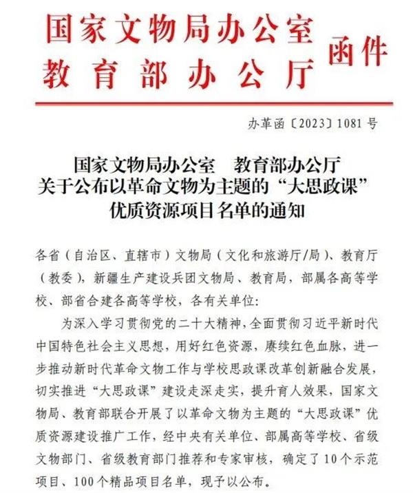 11月27日,全国大中小学思想政治教育一体化战略研讨会在上海召开。教育部、国家文物局在会上共同发布了以革命文物为主题的“大思政课”优质资源精品项目100个名单,我校报送的“青春一师榜样力量”主题现场教学项目成功入选。