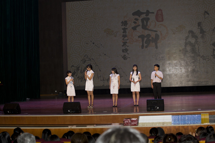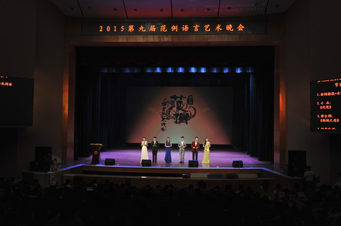 晚会主题为“全民阅读,艺术创客”,时代色彩浓厚,青春张力十足。经层层选拔脱颖而出的11个正式节目,来自范例语言艺术团、我校各院部及兄弟高等院校,涉及新闻播报、朗诵、相声、小品、讲故事、情景剧、先锋话剧、传统吟诵等多种语言艺术,内容紧扣主题,形式丰富多样,专业程度令人惊叹!主持人曾紫琪、杨鑫、王嫣然、刘宁、陈铭杰、颜娜、谭孟阳、陈梓晖,无论年龄大小,都收放自如,风趣幽默,体现了“范例语言家族”的团队风范。