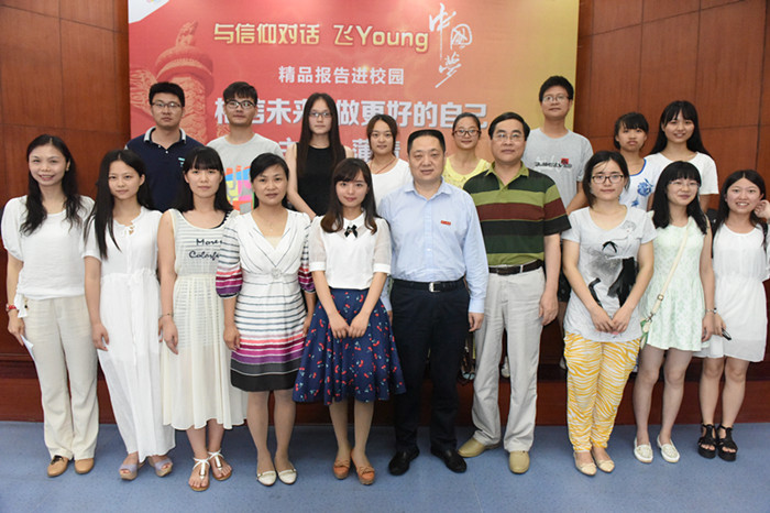 6月14日下午,我校首届优秀定向师范毕业生蒲晴出席由团省委主办的“与信仰对话”专题宣讲报告会,并在我校东方红校区举办了首场报告。团省委学校部部长王虹彬,我校校长肖湘愚,校长助理、党政办主任江正云及有关部门负责人出席报告会。校团委书记任晓晴主持了报告会,短短的一个半小时报告,让我们认知了一个全新的蒲晴。
