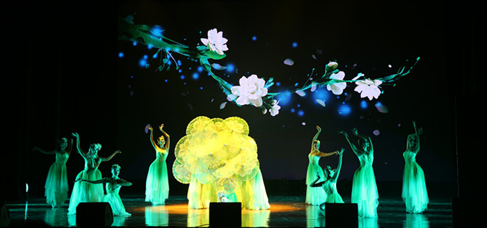 整个晚会分为上下半场,上半场在女子群舞《茉莉花开》唯美舞姿中拉开序幕,青年艺术家的动人舞姿将花的品德、花的气质、花的情致、花的典雅尽情展现。飘逸洒脱的男子群舞《水墨天书》则将水墨画的意象搬上舞台,在浓墨重彩间广舒长袖霓裳羽衣,创造了一种浓厚独特的中国古典氛围;女歌手王涓爱带来的一曲《芦花》宛转悠扬,令人陶醉;青年演员徐鹏演唱的《天路》、《父母在、家就在》唱出了青年人的自信、豪情与孝敬,现场观众点亮手机与歌手互动,整个场面交相辉映、相得益彰;四人舞蹈《梅兰竹菊》演绎了“花中四君子”的“傲、幽、坚、淡”,将四君子超凡脱俗的品格在舞蹈动作中得以体现。下半场古色古香的中国民族舞——男子群舞《太阳部落》、朝鲜族歌舞《桔梗谣》、蒙古族歌舞《鸿雁》、藏族歌舞《康定情》、维吾尔族歌舞《天山放歌》以及原汁原味的民族音乐——男声独唱《爱人》等节目将我国各民族歌舞的艺术魅力展现得淋漓尽致。最后,晚会在一曲气势磅礴的大型舞蹈《盛世鸿姿》中落下帷幕。整场晚会精彩纷呈、高潮迭起,观众不时报以热烈掌声,最后更是起立长时间鼓掌向艺术家们致敬。中国东方演艺集团青年艺术家们清新、淡雅、流畅的表演,为观众们带来了一场视听盛宴,将所有观众的注意力都引至歌、舞、乐本体所创造的独有艺术氛围中,让同学真正走进并了解高雅艺术,深刻体会到了高雅艺术的魅力所在。