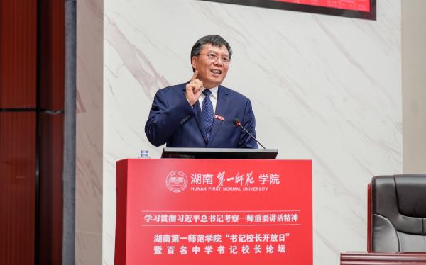罗成翼指出,3月18日,习近平总书记到湖南一师考察并发表重要讲话,给了我们极强的思想指引、精神鼓舞和奋斗感召。学校举办“书记校长开放日”暨百名中学书记校长论坛,就是要落实总书记“第一师范要办好,还要办好各级各类学校”的殷殷嘱托,加强与各级各类学校的合作交流,推进协同育人,实现优势互补,不断提高人才培养质量。我们愿与全省各中学携手一道,以更强的使命感和责任感把学校办好、把学生培养好、办好人民满意的教育,共同助力教育强省建设,为实现“三高四新”美好蓝图,推进中国式现代化培养一批批栋梁之材。