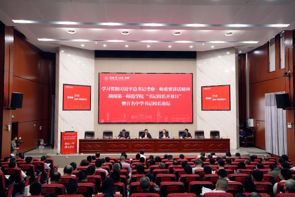 我校初等教育学院、智能制造学院负责人及湖南师范大学附属中学、长沙市明德中学、衡阳县第二中学、邵东市第一中学等高中的书记、校长代表在论坛作了主旨发言。