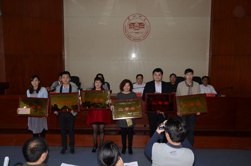 会上,学生工作处处长何文对2014年度我校学生工作进行了总结,并对2015年度的工作进行了布置。她指出,学生工作要树立“以生为本”的育人理念,坚持“全方位的教育、全过程的管理、全天候的服务、全身心的投入”的“四全”工作标准,具体工作要做到:坚持“一个中心”、建设“两大工程”、立足“三个服务”、关注“四大群体”、注重“五个结合”、完成“六项指标”;副处长丁立平宣布了2014年辅导员考核结果;副处长杨虎智宣布了我校第四届辅导员技能大赛获奖名单;何文处长宣布了湖南省第四届辅导员技能大赛复赛、决赛获奖名单;校长助理江正云宣布了2014年度学生工作先进单位名单,并向获奖个人和集体颁发了奖牌和证书。