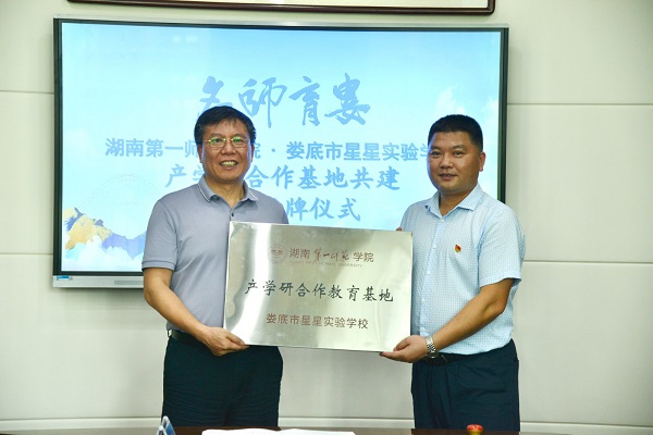 签约仪式上,胡穗指出,双方合作具有重要意义。一是推进大中小学思政教育一体化建设的务实之举。思政教育是大学和中小学都要回答的时代命题,星星实验学校的少先队名师工作室、少先队示范活动等与我校“大思政”育“大先生”改革可双向赋能,在落实立德树人根本任务方面合作前景广阔。二是落实党中央教育政策的务实之举。进一步推动了高校与地方基础教育合作办学、合作育人,可实现优势互补、共同发展。三是加强我校与娄底市各层级教育资源合作的务实之举。星星实验学校是娄底市的基础教育名校,两所名校携手共进、资源共享,能促进双向交流与互动,助力基础教育高质量发展。