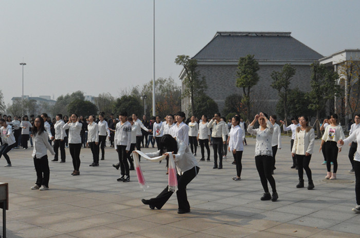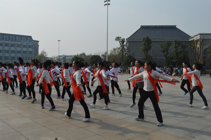 为进一步贯彻落实团中央“走下网络、走出宿舍、走向操场”大学生主题群众性课外体育锻炼活动的指示精神,引导学生乐于学习、注重运动、健康生活,我校文学与新闻传播学院率先组织全院青年大学生于11月21日12时在学校中轴广场举行班级“快闪舞蹈”比赛,26个班级千余学子年少青春的力量在中轴广场得以绽放。文学院党政领导、多位辅导员老师出席本次比赛并担任评委。