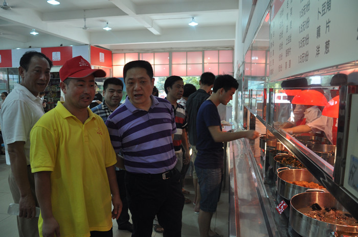 今年,我校对嘉泰学生公寓与学生食堂进行了回购,真正实现了对学生公寓与食堂自主经营与管理。为了确保学生能有一个安全、卫生、舒适的生活环境,暑期,学校对学生公寓与食堂进行了全面维修,学生一、二食堂经过严格招标,引进在湖南省高校餐饮行业信誉较高的中快餐饮集团和长沙中一餐饮管理有限公司进行经营。走进装修一新的学生食堂,窗明几净,倍感清爽,每个食堂为同学们准备了丰富的菜肴、免费月饼和免费汤。看到同学们一边看着电视一边开心地用餐,肖湘愚不时上前询问同学们的用餐感受,并叮嘱食堂负责人一定要加强食堂的卫生管理,要注意饭菜质量,切实给全校学生提供优质的服务。