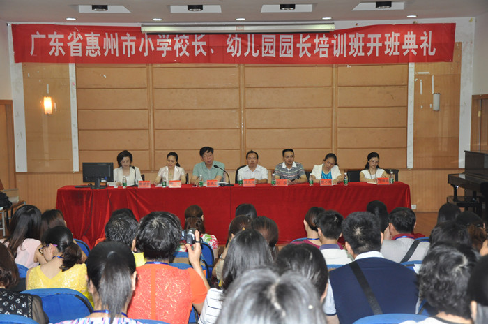6月13日上午,我校举办的广东省惠州市小学校长、幼儿园园长培训班开班典礼在城南书院校区举行,来自广东惠州市50名小学骨干校长和50名幼儿园骨干园长将在我校接受为期8天的集中培训。广东省惠州市教育局副局长邓凡用,惠州市教育局培训科科长谢茵,我校副校长李克勤,副校长刘宇,继续教育部主任、校长培训首席专家曾小玲,教育科学院学前教育教研室主任、园长培训首席专家万湘桂,继续教育部副主任黄朝霞,出席开班典礼并在主席台就坐。开班典礼由黄朝霞主持。