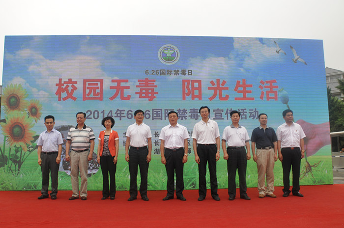 6月26日上午,长沙市高新区6·26国际禁毒日主题宣传活动在我校东方红校区举行。我校副校长杨兰英,高新区党工委委员、管委会副主任、区禁毒委主任陈大庆,区党工委委员、公安分局局长、区禁毒委副主任陈曙光等领导应邀出席活动启动仪式。我校外国语学院学生代表200余人参加了活动启动仪式。