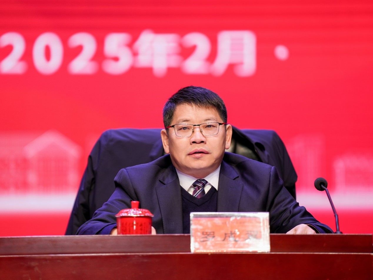 罗成翼充分肯定了学校2024年的发展成效,总结了十项亮点工作,并对2025年重点工作进行部署,强调要全力以赴抓好七个方面的落实。一是牢记殷殷嘱托,在深入推进“三好”共识走深走实上下功夫。深刻把握“三好”嘱托的辩证关系,从百年一师“三高”密码中汲取办好新时代一师的强大动力。用好校本红色资源,推进大思政课改革,做优做强“第一师范”大思政课品牌,建好建特“一馆三线”红色文化育人品牌。放大办学格局,全面推广“大思政”育“大先生”改革成果,加快构建“大思政”育“栋梁材”育人新格局。二是建立分类发展机制,在优化学科专业结构上下功夫。推动“四个转变”,做强教师教育,小学教育交出引领答卷、中学教育交出合格答卷。推进“四链融合”,做实新拓展理工科专业,大力推进理工科师资队伍建设、实验实训条件建设与课程建设,新拓展理工科交出“追赶”答卷。对标“四新要求”,升级改造传统专业,推动传统文科专业向“数字+”转型,传统理工科专业向“智能+”升级,传统专业群交出“提质”答卷;落实“一把手”工程,对接学科优化稳定招生规模,开展“走进访请”大行动,大力推进招生就业工作。三是聚焦扩点提质目标,在抓实抓好学科建设和研究生教育上下功夫。推进学科分层分类建设,进一步加大省级应用特色学科建设力度,大力扶持工科专业发展,积极拓展理科学科,鼓励学科交叉融合,推进学科集群发展。抓好研究生教育,加强学位点内涵建设,做好第一批自主培养硕士研究生招生录取工作,完善研究生人才培养方案与管理制度。推进硕士点“扩点提质”,全面启动2026年硕士学位点申报工作,超前布局2029年拟申报硕士学位培育点。四是强化有组织科研创新,在科研质量、贡献、成果转化上下功夫。抢抓高水平项目,力争国家基金立项数 20 项以上,国家级重大课题取得突破。催生高水平成果,力争省科学技术奖、省社会科学优秀成果奖有突破,省教学成果奖稳中有升。抓实科研平台申报与建设,力争新增省重点实验室或省工程研究中心 1-2 个。实施科研平台运行管理机制改革,全面激活科研平台效能。加强科研协同创新,出台科技成果转化考核激励办法,健全成果价值评价体系,全面提升科技成果转化效能。五是持续强化条件支撑,在提升高质量发展保障力上下功夫。开源节流加强财力建设,提高各类资金资产使用效益,集中财力办大事。有序推进基础设施建设,切实加强办学条件支撑,高标准提质扩容工程实训中心,加紧建设新办专业实验实训室。扎实守好底线保平安,进一步健全安全责任体系,强化校园安全管理与风险防控。六是深化改革创新,在提升内部治理效能上下功夫。强化规划引领作用,全面总结学校“十四五”规划完成情况,科学编制学校事业发展“十五五”规划。聚焦综合管理质效,进一步深化机构编制、绩效工资、教师评价改革。深化体制机制创新,对标大学建设要求推进治理体系现代化。七是强化党建引领,在领强班子带强队伍上下功夫。领强校院两级班子,配强提能干部队伍,持续加大对专业能力强、学术水平高的年轻干部选拔力度,重点提升干部领班带队能力、抓党建发展能力、多部门协同能力、创造性开展工作等能力。持续抓好作风建设,坚持选人用人不搞圈子、基建后勤不搞名堂、核心利益不搞关系“三不”原则,做到“五要五不要”,巩固风清气正的政治生态、管理生态、学术生态。