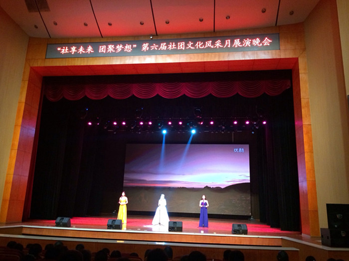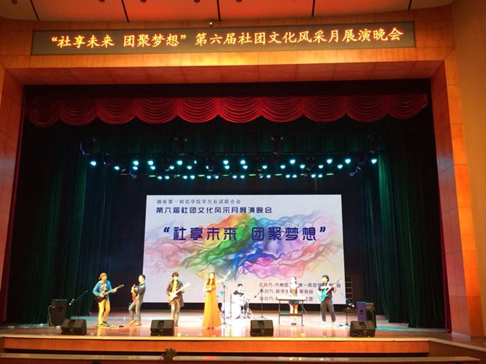 4月25日晚,艺术楼剧场人声鼎沸,掌声雷动,呈现出一派欢乐祥和的景象,由校团委主办、校学社联承办、42个校级社团协办的我校第六届学生社团文化风采月展演晚会在这里隆重举行。校党委书记彭小奇、校长肖湘愚、副校长杨兰英,校团委、保卫处、公管中心、各系部等单位的负责人和42个校级社团、省会16所高校社联代表共1000余人观看了晚会。