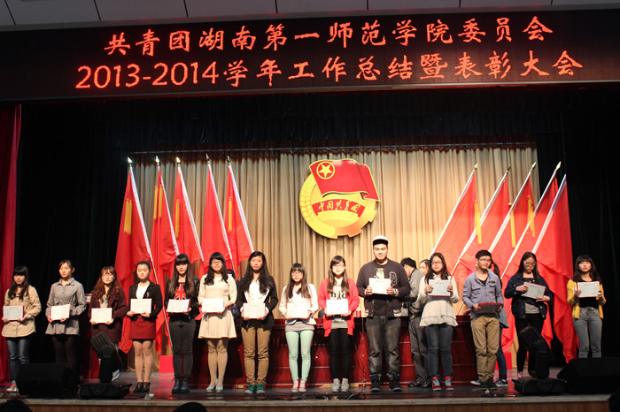 一年来,我校广大青年学生和各级团组织在学校党委和上级团组织的领导下,以邓小平理论和“三个代表”重要思想为指导,高举中国特色社会主义理论伟大旗帜,深入贯彻落实科学发展观和党的十八大精神,求真务实,开拓创新,圆满完成了各项学习工作任务,涌现出了一大批先进集体和先进个人。大会授予数学系团总支、外语系团总支“学习型团总支”称号;授予教育科学系团总支、中文系团总支、美术系团总支“红旗团总支”称号;授予音乐系2013级640音乐班等11个团支部“学习型团支部”称号;授予体育系2011级健美操班等36个团支部“先进团支部”称号;授予荆棘鸟文学社等8个学生社团“优秀学生社团”称号;授予张丛等26名同学“学习型团干部(团员)”称号;授予刘雪梅等215名同学“优秀学生干部”称号;授予何亚玲等309名同学“优秀团员”称号;授予陈金华等8名同学“优秀校园播音员”称号;授予李望等4名同学“优秀校园记者”称号;授予俞颖等10名同学“优秀文明督导员”称号;授予张汇等10名同学“优秀护校队员”称号;授予彭弘咏等10名同学“优秀礼仪队员”称号;授予罗敏琦等36名同学“优秀青年志愿者”称号;授予刘智等42名同学“优秀社团会员”称号;授予杨艳琴等8名同学“优秀社团干部”称号;授予戴珊等29名同学“优秀校外辅导员”称号。在2014年度的“创青春”创业大赛中,教科系曾友连等同学创作的《“守望童心”工作站》等3件作品获得一等奖;中文系林欢等同学创作的《“心手相连”手工艺品工作室》等5件作品获得二等奖,外语系卿艳娟等同学创作的《垃圾艺术展览馆》等8件作品获得三等奖;经济管理系王思敏等同学创作的《最美樱花雨,最浓家教情》等10件作品获得优胜奖。