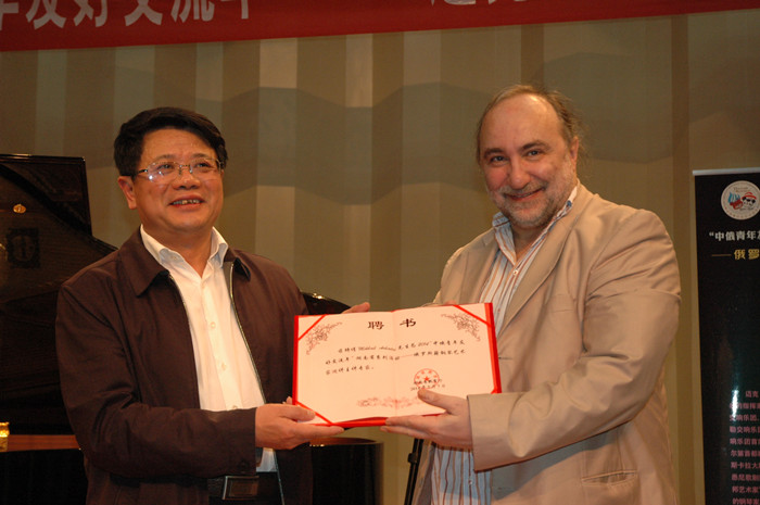 肖国安为迈克·阿尔卡杰夫颁发了省教育厅“海外名师”的聘书,并发表了重要讲话。他首先代表省教育厅对启动仪式的成功举办表示热烈祝贺,向来湘巡讲的钢琴艺术大师迈克·阿尔卡杰夫先生表示衷心感谢。肖国安指出,两国元首共同确定的友好交流年以青年为主题,旨在传承中俄友谊,进一步加强人文交流,让中俄两国的青年能更好地接好两国世代友好的接力棒。肖国安介绍,“中俄青年友好交流年”在中国将有177项活动,在湖南将有钢琴艺术家巡讲、中俄青年摄影大赛、中俄家庭友好交流、艺术巡演等4项活动,我省一定要以此交流为平台,认真开展好系列活动,为中俄青年建立积极、丰富的往来联系做出应有贡献。肖国安说,今天,迈克先生来湖南高校开展巡讲,并和师生们面对面交流,这对促进高校音乐专业建设、提高教师教学水平、陶冶学生的心灵具有很重要的作用。