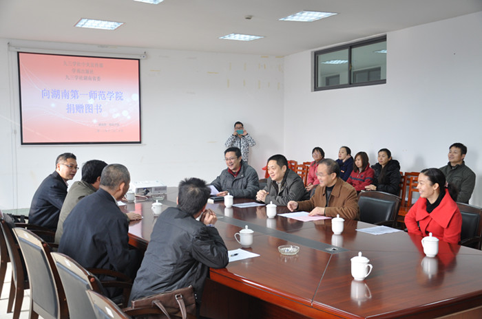 12月20日上午,九三学社中央宣传部、学苑出版社、九三学社湖南省委员会向我校捐赠图书3000余册,价值13万元。捐赠仪式在东方红校区图书馆会议室隆重举行,副校长刘宇主持了捐赠仪式。九三学社中央宣传部巡视员、我校校友彭官章,湖南省人大常委会委员、九三学社湖南省委专职副主委王仁祥及九三学社湖南省委有关人员,校领导彭小奇、肖湘愚、杨兰英,党政办、组织统战部、宣传部、图书馆负责人及我校九三学社社员出席了捐赠仪式。