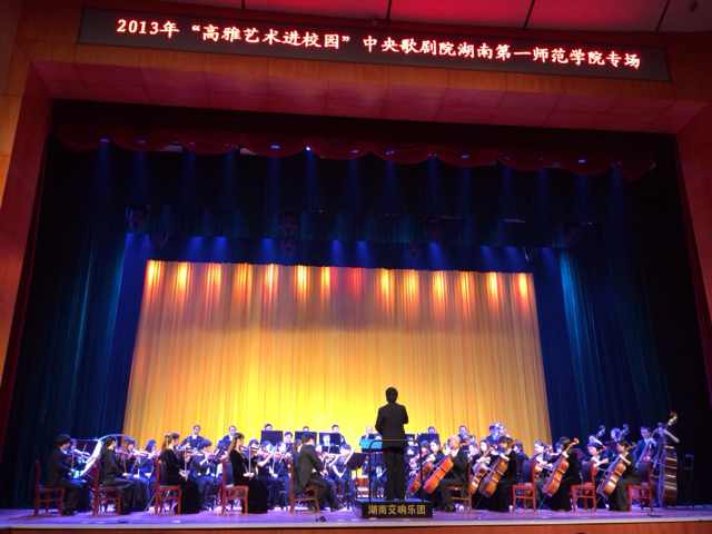 10月24日晚,由教育部、文化部、财政部主办,湖南省教育厅协办,我校承办的2013年高雅艺术进校园中央歌剧院Kaiyun官方网站登录入口专场暨我校第29届校园文化艺术节开幕式在东方红校区音乐大剧院隆重举行。校党委书记彭小奇、副校长刘志敏、副校长杨兰英出席了演出,我校千余名师生欣赏了这场高水准、高品位的视听盛宴。
