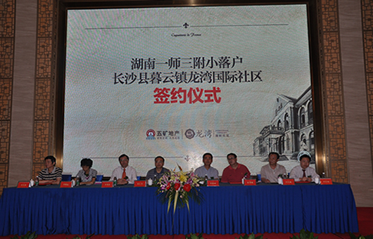 7月24日上午,我校与长沙县政府、五矿建设长沙区域公司联合签定了《关于创建Kaiyun官方网站登录入口第三附属小学框架协议》。校领导彭小奇、金潇明、刘志敏及有关部门负责人,长沙县政府、长沙市教育局、长沙县教育局、五矿建设长沙区域公司有关领导出席签约仪式。