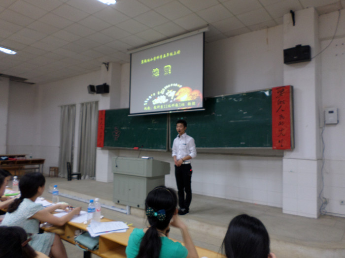 5月28、29日晚,由校团委和教务处共同举办的2013年上学期师范生微型课比赛决赛在东方红校区实验楼C栋201教室隆重举行。校团委书记任晓晴、教务处副处长黄国盛、校团委副书记赵小群、杜毅老师、一师二附小黄萃老师以及上一届微型课一等奖获得者中文系学生李春阳担任此次比赛的评委,另外由学校20名优秀校外辅导员代表组成大众评审团。全校共600余名学生观看了此次比赛。