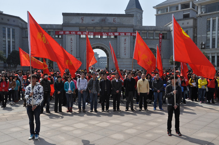 3月5日,“传承雷锋精神,共创美丽校园”为主题的学雷锋系列活动启动仪式在我院东方红校区国旗广场隆重举行。院党委副书记金潇明,党委宣传部部长陈志武,团委书记任晓晴、副书记赵小群,外语系党总支副书记欧阳伶俐,思政部党总支副书记谭小红以及各系团总支书记和学生代表500多人参加了本次仪式。仪式由团委书记任晓晴主持。