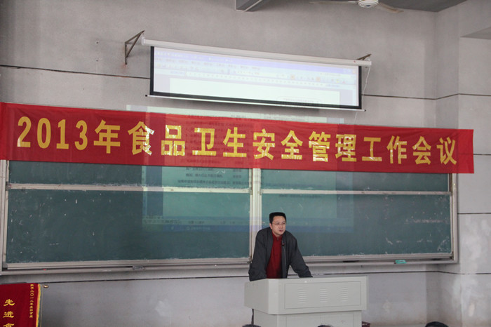 3月8日下午,我院2013年食品卫生安全管理工作大会在理科楼B栋1报告厅召开。学院副院长刘宇,长沙市卫生监督所食品安全科科长冯异,院后勤服务公司、湖南嘉泰教育投资公司、尚禧餐饮公司负责人及院学生会权益服务部学生干部代表出席了会议。