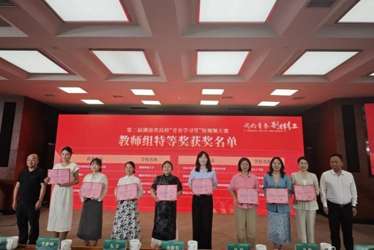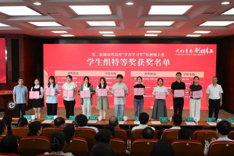 5月20日,由中共湖南省委教育工委、湖南省教育厅、湖南日报社联合主办的第二届湖南省高校“青春学习堂”短视频大赛颁奖典礼在中南林业科技大学礼堂举行。我校荣获优秀组织奖,外国语学院副教授向红的作品《红色校训里的人民情怀》荣获教师组特等奖,马克思主义学院学生团队作品《信仰如炬照征程 青春担当续华章——从毛泽东青年志向看新时代报国精神传承》荣获学生组特等奖。