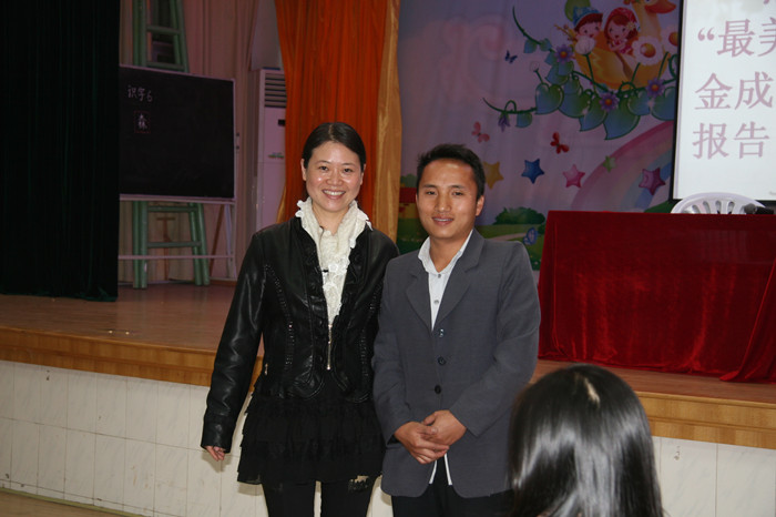 吴金成老师的报告没有华丽的辞藻,没有煽情的语调,但是他为学生做的点点滴滴是那么朴实、感人。他鼓励孩子们树立自信心;带领孩子们跳绳;用自己微薄的工资给孩子们购买奖品;为孩子们增添营养自购豆浆机 、自接电源;桌椅坏了亲自动手修理;送孩子们回家;努力教孩子们更多的知识;走家串户劝更多的孩子来上学……