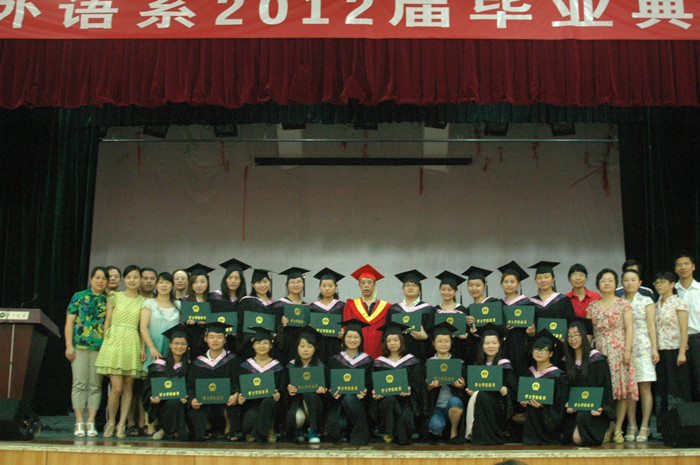 6月19日晚,“锦年咏青春 岁月祝鹏程”外语系欢送2012届毕业生文艺晚会在东方红校区嘉泰广场隆重举行。院学生处何文处长,团委书记任晓晴、副书记罗祥云,系主任陈友良、党总支书记赵花云、副主任邓于祁、副书记欧阳伶俐等领导老师应邀出席了本次晚会,来自外语系全体学生、院学生干部及其他系部学生干部观看了整场晚会。