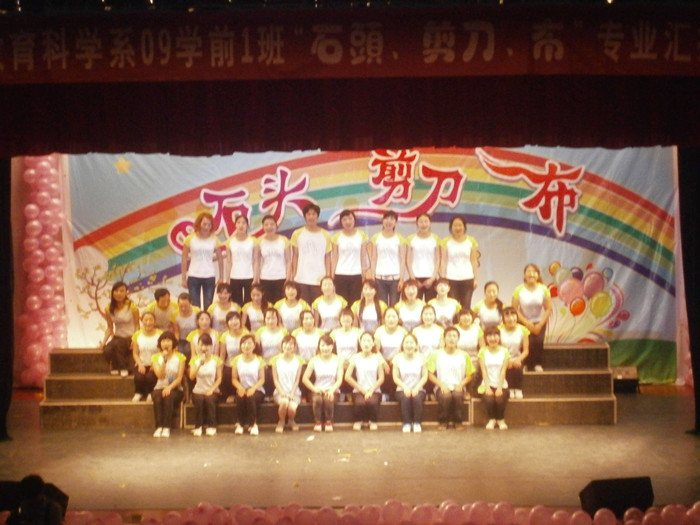 5月10日晚,“石头,剪刀,布”09级学前教育1班专业汇报演出拉开帷幕。演出节目种类丰富,有情景舞蹈、热舞串烧、童话剧、歌曲串烧、吉他弹唱、校园情景剧、小品、合唱等,节目独创且具有个性。其中小品《九儿》的演员们精湛的演技把全场的气氛推向了高潮,而童话剧《当童话遇到童话》则让大家知道原来童话也可以这样充满趣味。现场观众不时爆发出热烈的掌声,深切感受到了学前教育的精彩与特色。