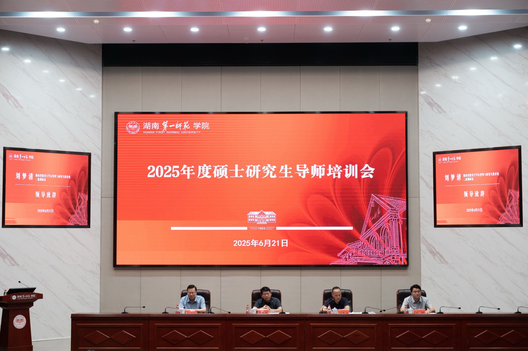 为全面落实立德树人根本任务,大力弘扬教育家精神,着力打造新时代高素质、专业化的研究生导师队伍,6月21日,我校2025年度硕士研究生导师集中培训在百熙楼228报告厅拉开帷幕。省教育厅学位管理与研究生教育处二级调研员刘梦清出席开幕式并致辞,校党委书记罗成翼主持开幕式并作专题辅导报告。全校硕士研究生导师,研究生培养学院负责人及教育管理人员近200人参加培训。