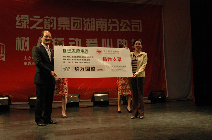 绿之韵集团执行总经理龚振介绍了绿之韵集团的经营理念以及多年来在社会公益事业上所作的不懈努力,并做了《我的梦想我的未来》专题报告,并代表绿之韵集团向长沙市青基会递赠了9万元支票,绿之韵经销商向我院18名品学兼优的家庭经济困难学生每人赠送了3000元现金和2000元物资。