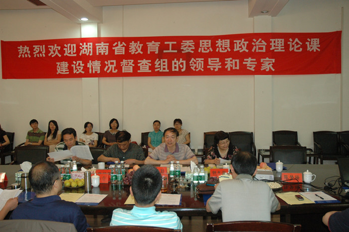 5月29日上午,省高校思想政治理论课督查组在湖南农业大学党委副书记彭克勤的带领下,一行4人来我院就思想政治理论课建设情况进行督查。院领导詹小平、彭小奇、刘鸿翔、刘志敏以及党政办、教务处、宣传部、人事处、科研处、财务处、思想政治理论课教学部的有关负责人出席汇报会。院长彭小奇主持了汇报会。