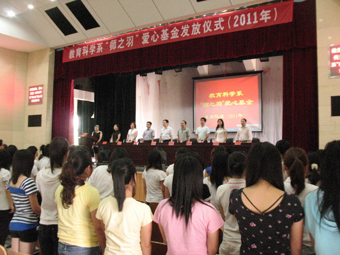 据悉,教育科学系“师之羽”爱心基金成立于2010年9月。它以“救贫助困,爱心传递”为宗旨,以“公开、公平、公正,减轻贫困学生学习生活困难”为原则而设立。系部拿出5千元作为启动资金,现通过系部师生捐款,已筹集善款22835元,本次活动共发放爱心善款2万元。