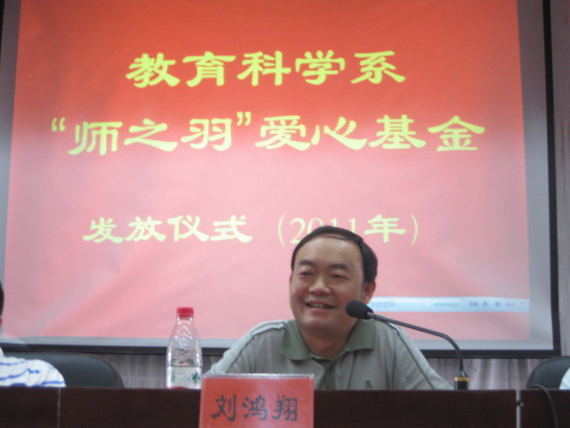 5月19日下午,我院教育科学系“师之羽”爱心基金发放仪式在东方红科技楼演播厅隆重举行。院领导肖湘愚、刘鸿翔以及党委宣传部部长陈志武、学生工作处处长何文、团委书记任晓晴、教育科学系主任彭小虎、副书记袁向荣、副主任王建平等应邀出席了仪式。