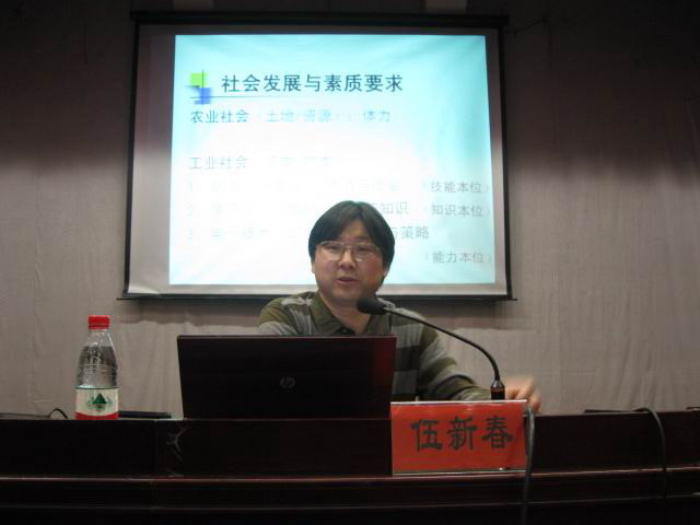 4月18号晚,我院教育科学系邀请全国知名教育心理学专家伍新春教授为心理学和小学教育专业学生做了一场题为《谈“学”论“教”——做信息时代的快乐教师》的学术讲座,教育科学系领导与部分老师参加了讲座。