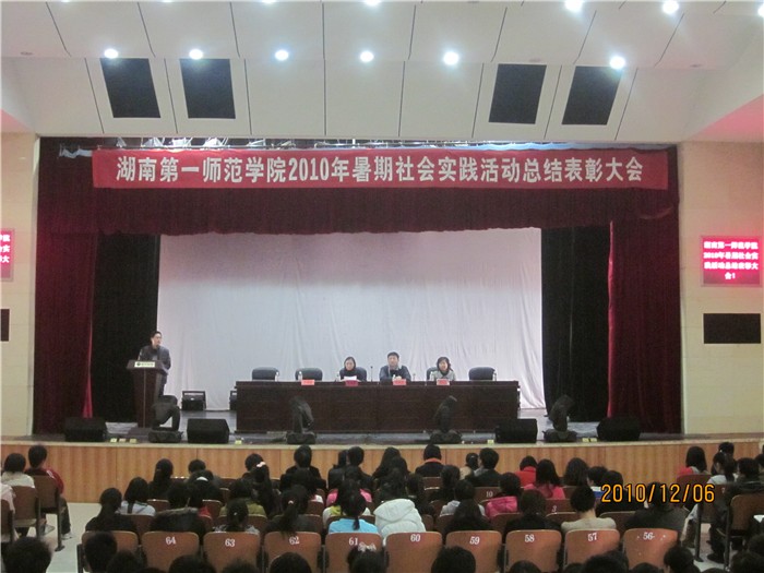 12月6日下午,我院2010年大学生暑期社会实践活动总结表彰大会在东方红校区科技楼演播厅隆重举行。副院长李学全,学生工作处处长何文,团委书记任晓晴、副书记罗祥云,各系部党总支书记、副书记,各系部团总支书记,以及暑期“三下乡”社会实践团队员、暑期优秀社会实践者等学生代表300余人参加了表彰大会。大会由团委书记任晓晴主持。