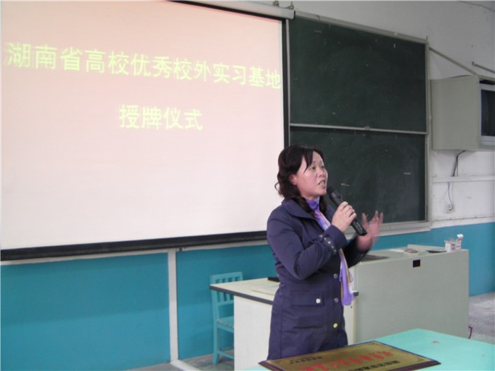 长沙市开福区教育局组织人事科肖先明科长、新竹小学陈利球校长、钟巧副校长、我院驻新竹小学实习带队教师肖弋副教授和实习队全体师范生参加了授牌仪式。在授牌仪式上,刘志敏副院长和肖先明科长发表讲话。肖先明科长在讲话中对我院多年来为开福区的基础教育事业培养了大量优秀的教师和管理人员表达了衷心的谢意,并表示开福区教育局将一如既往地重视和支持我院的教育实习工作,也希望能与我院进一步加强交流与合作,在开福区建设更多的优秀教学基地,共同为基础教育事业服务。刘志敏副院长在讲话中也表达了对开福区教育局、新竹小学的感谢,并指出教育实习是教师成长的重要实践教学环节,而优秀实习教学基地是教育实习工作顺利开展的重要保障,学院将进一步加强教育实习基地的建设和管理工作,并鼓励实习学生充分利用实习基地良好的教育教学资源,强化教师技能的训练,练就本领,服务社会。