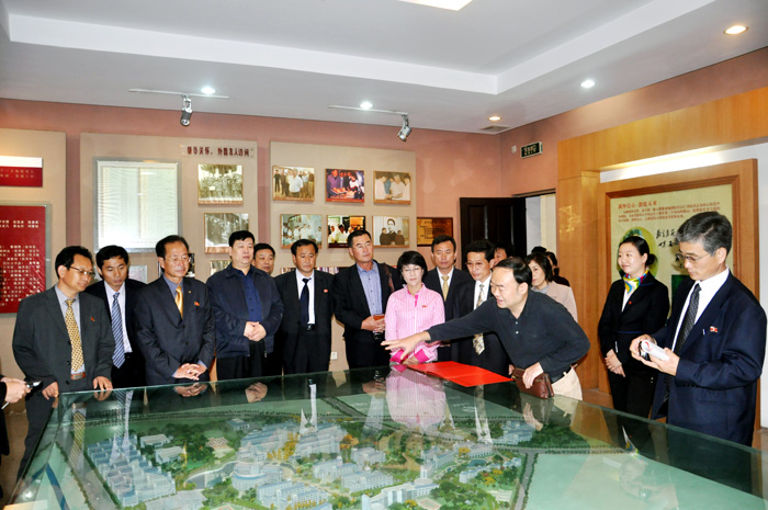 10月18日上午,由朝鲜国家观光总局副局长赵成杰(JO SONG GOL)和朝鲜妙香经济集团党委书记姜万雄(KAND MAN UNG)带队的朝中友谊参观团一行15人来我院青年毛泽东纪念馆参观。国家旅游局机关服务中心副主任李会聚(正司级)等领导陪同参观,我院副院长刘鸿翔代表学院热情接待了外国友人。